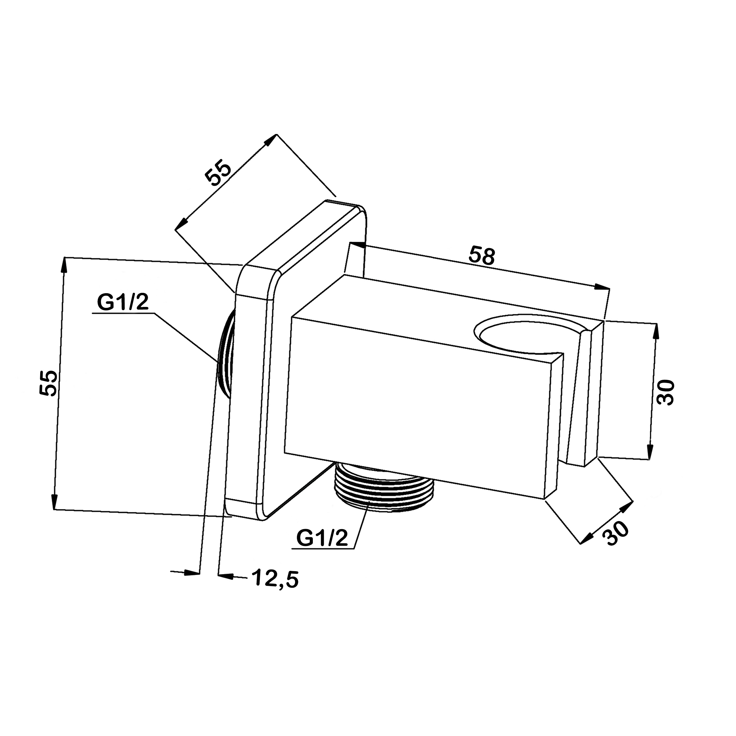 Шланговое подсоединение с держателем для лейки. Произведено из высококачественной латуни, стандарт Pb free (без свинца).
